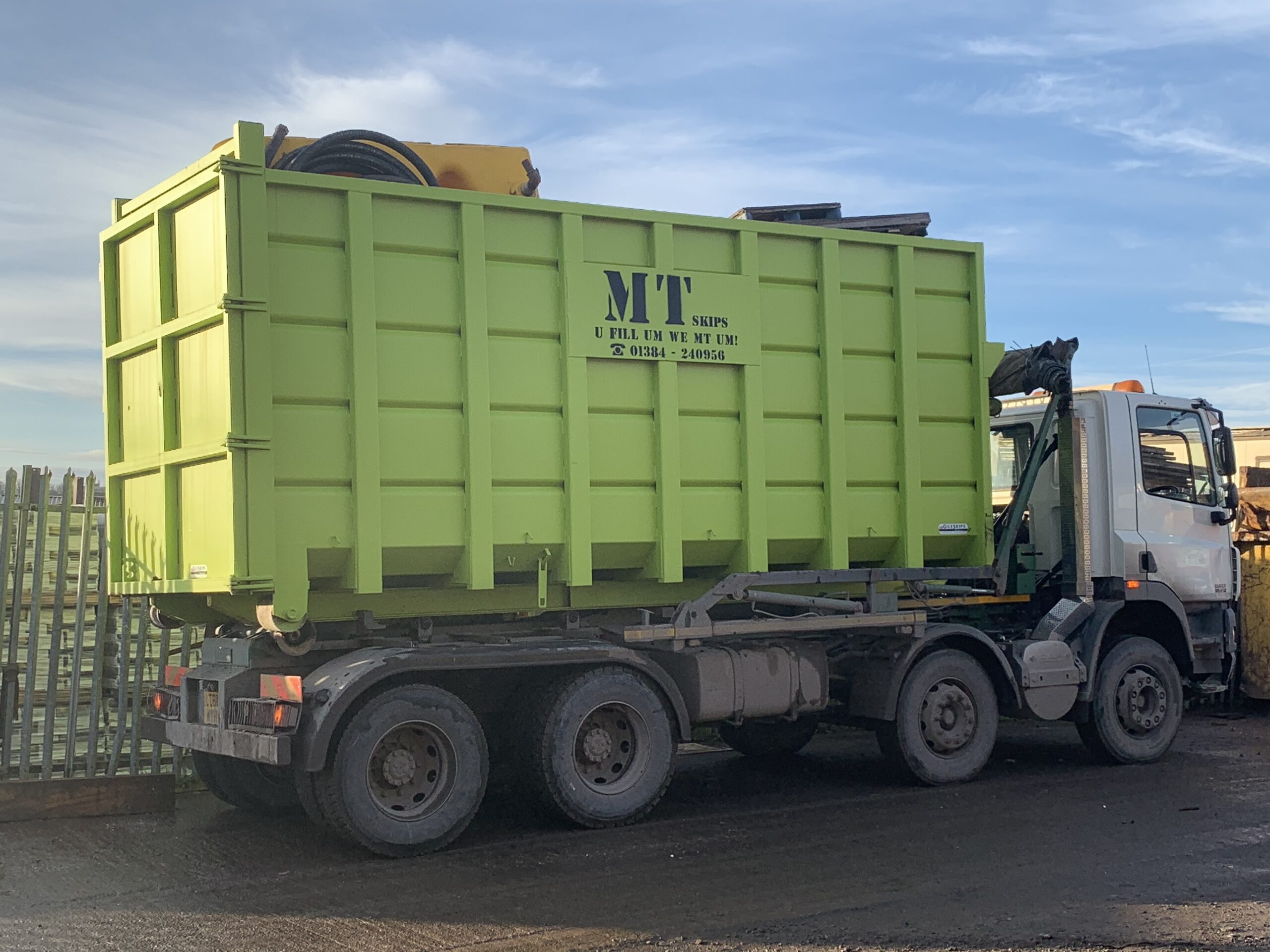 Our Roll-on Roll-off skips, are a large form of skip hire. At MT Skips, they are available in a number of sizes, ranging from 20-yard to 40-yard capacities. They can carry most types of waste, and are popular on commercial and industrial sites due to their large size. While they are occasionally hired by domestic clients, they are more commonly used by the commercial sector. Roll-on Roll-off skip hire is the perfect solution for any job that will be producing high volumes of waste. Price on availability.